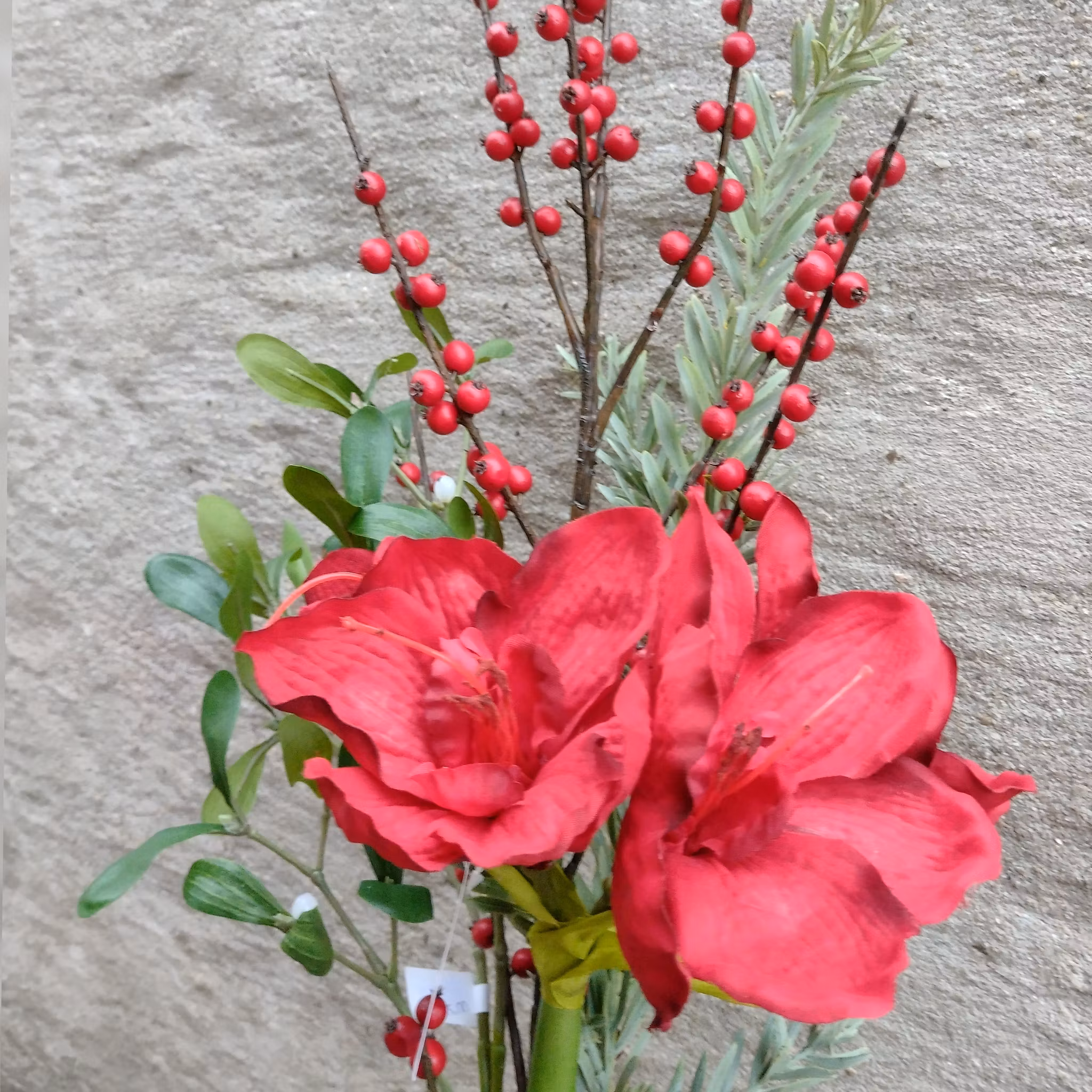 • 1 x amaryllis i smuk rød – bukettens juleklassiker med dyb elegance