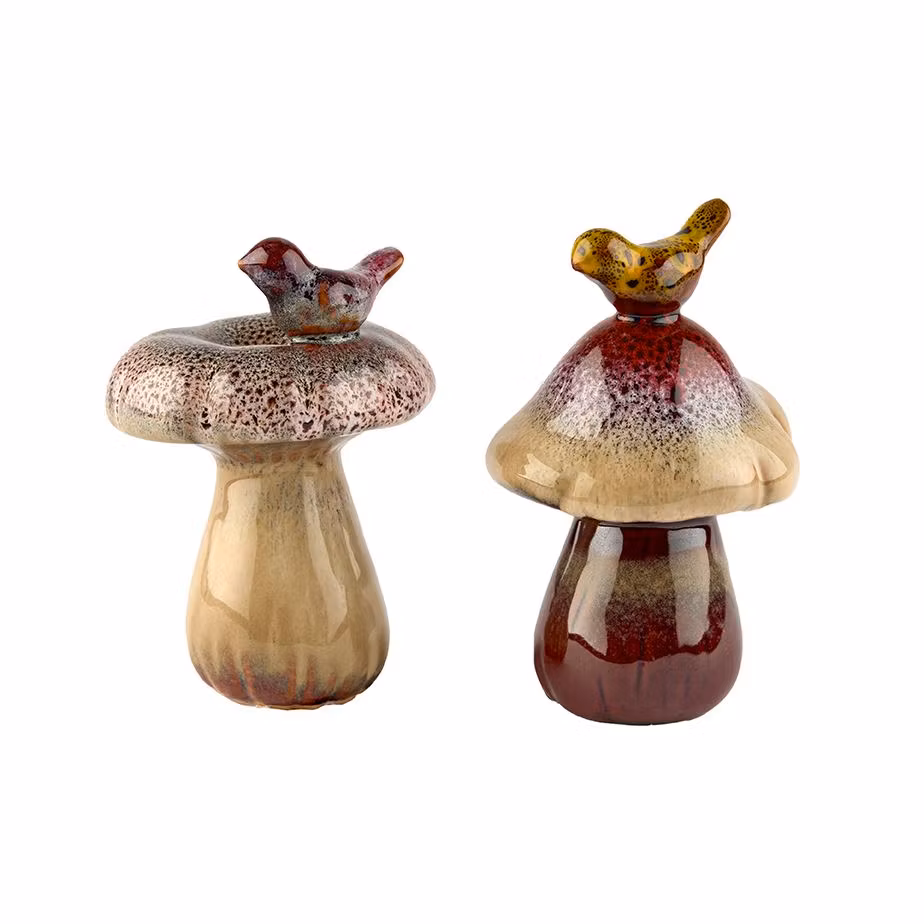 Mushroom/Bird svamp lille 49,- Model Nr. 1 Rund top Nr. 2 Flad top I lager. Tilføj til indkøbskurven Lagersaldo: Del Produktbeskrivning Anmeldelser Skøn keramik svamp med fugl, fås i to forskellige modeller - de kan variere i farven da i er håndforarbejdet H 12 cm.