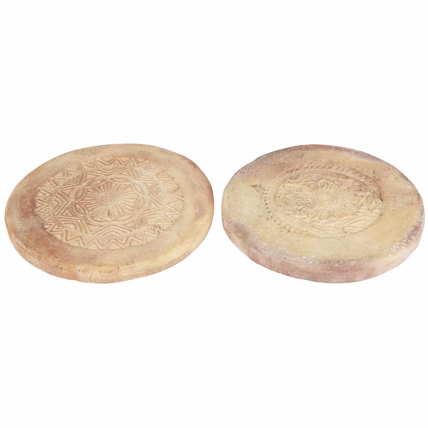 Smuk UNIKA-brik i terracotta, som oprindeligt er håndlavede trykforme til tekstiltryk. De er alle unikke i form og farve og har filtdupper under bunden. De kan bruges som dekoration i hjemmet med et bloklys eller blomst på. Kan også bruges til bordskåner