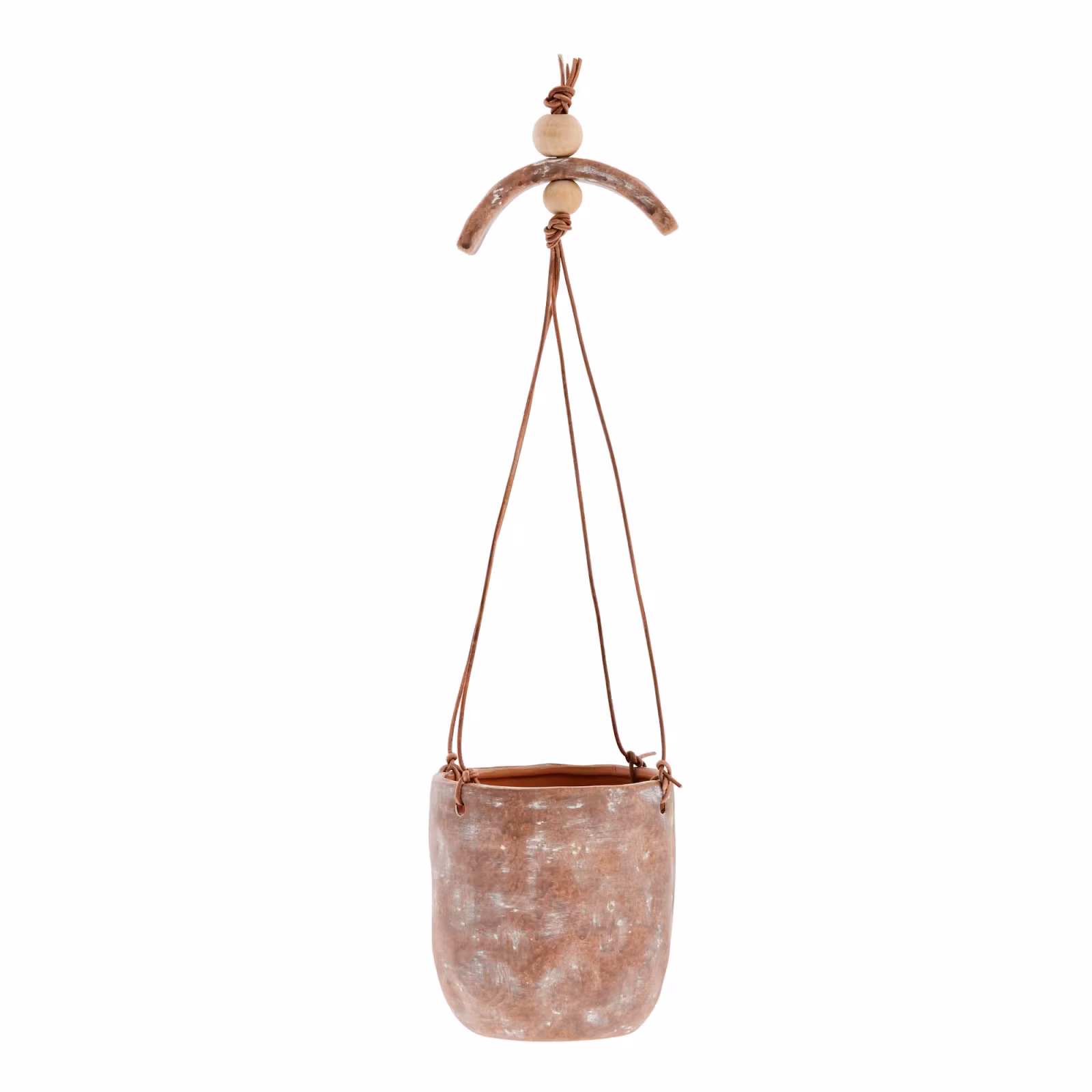 Elegant hængekrukke af keramik. Denne smukke Avillia keramiske hængekrukke med tre snore til ophængning skaber en skøn stemning i ethvert hjem. Løft dine planter eller blomster og mærk en vidunderlig atmosfære i rummet. Krukken er lige til at hænge op lige der, hvor du synes. Pynt hængekrukken med en fin hængeplante eller blomster i smukke farver og skab en hyggelig stemning. Hængekrukken er håndmalet af dygtige kunstnere.