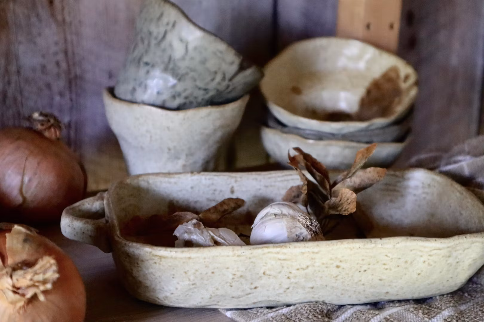 Håndlavet serie, der kombinerer et naturligt design med en smuk, organisk form, der giver et rustikt og jordnært præg. Den matte glasur i jordfarver forstærker charmen og gør hvert møbel unikt i sit udseende.