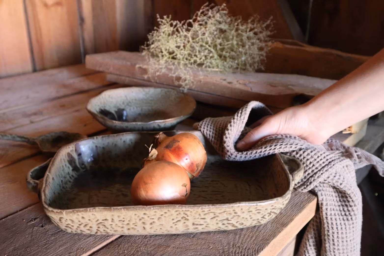 Håndlavet serie, der kombinerer et naturligt design med en smuk, organisk form, der giver et rustikt og jordnært præg. Den matte glasur i jordfarver forstærker charmen og gør hvert møbel unikt i sit udseende.