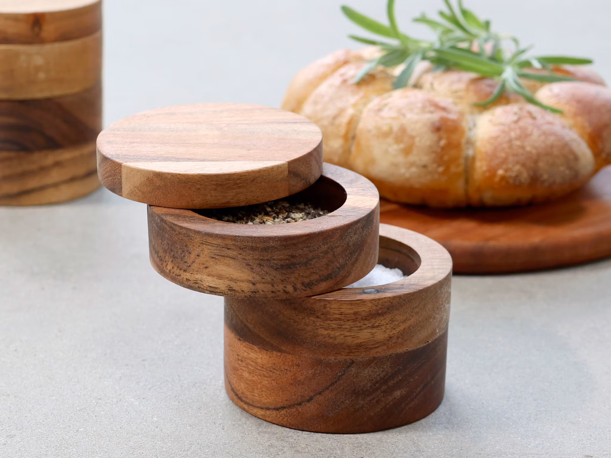 Salt og peber kar 219,- I lager. Tilføj til indkøbskurven Lagersaldo: 3 Del Produktbeskrivning Anmeldelser Salt og peber kar i træ fra Chic Antique H 10,5 cm Ø 9,5 cm