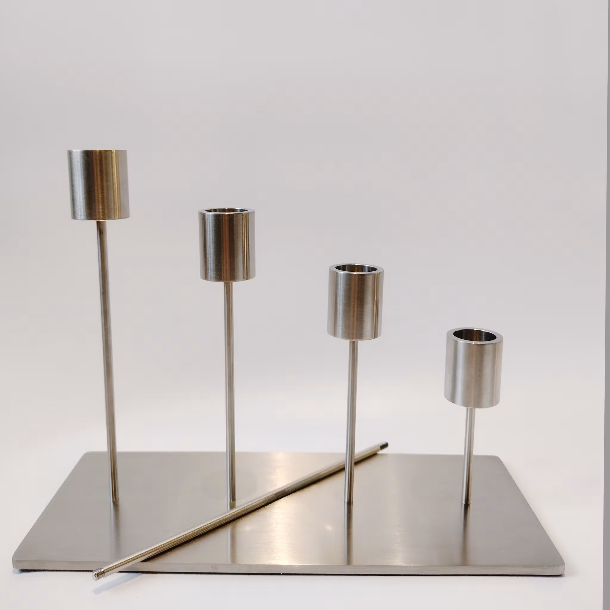 Når man køber sættet, indeholder det pladen, en æske med 5 stænger (2-6 kugler, så kan kunden selv vælge størrelse på stængerne) samt 4 toppe i Elegance