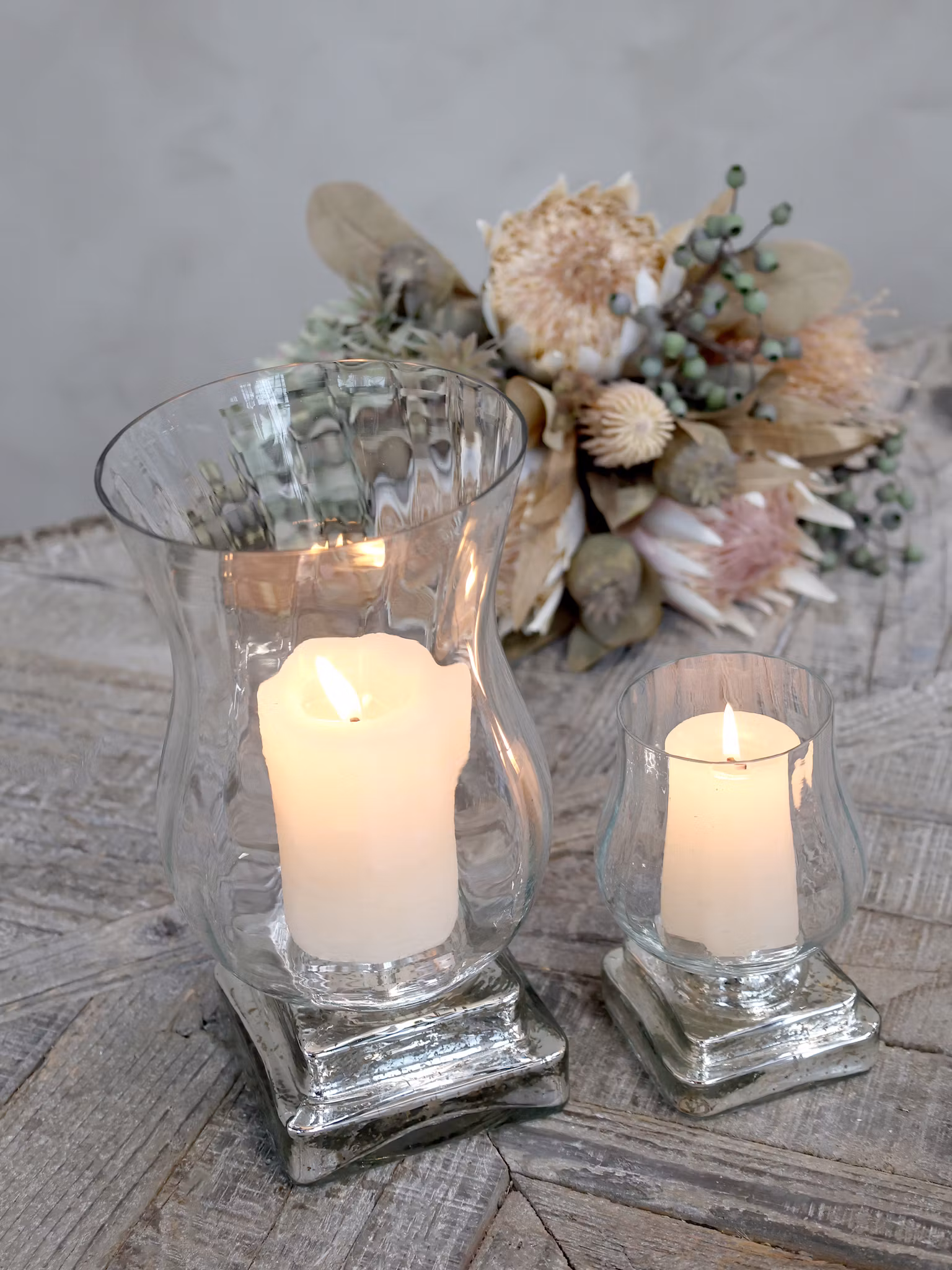 Hurricane på fod 59,- I lager. Tilføj til indkøbskurven Lagersaldo: 6 Leverandør: Chic Antique Del Produktbeskrivning Anmeldelser Smuk hurricane på fod i glas med fattigmandssølv fodH 15 cm Ø 8 cm (Den lille model på billedet