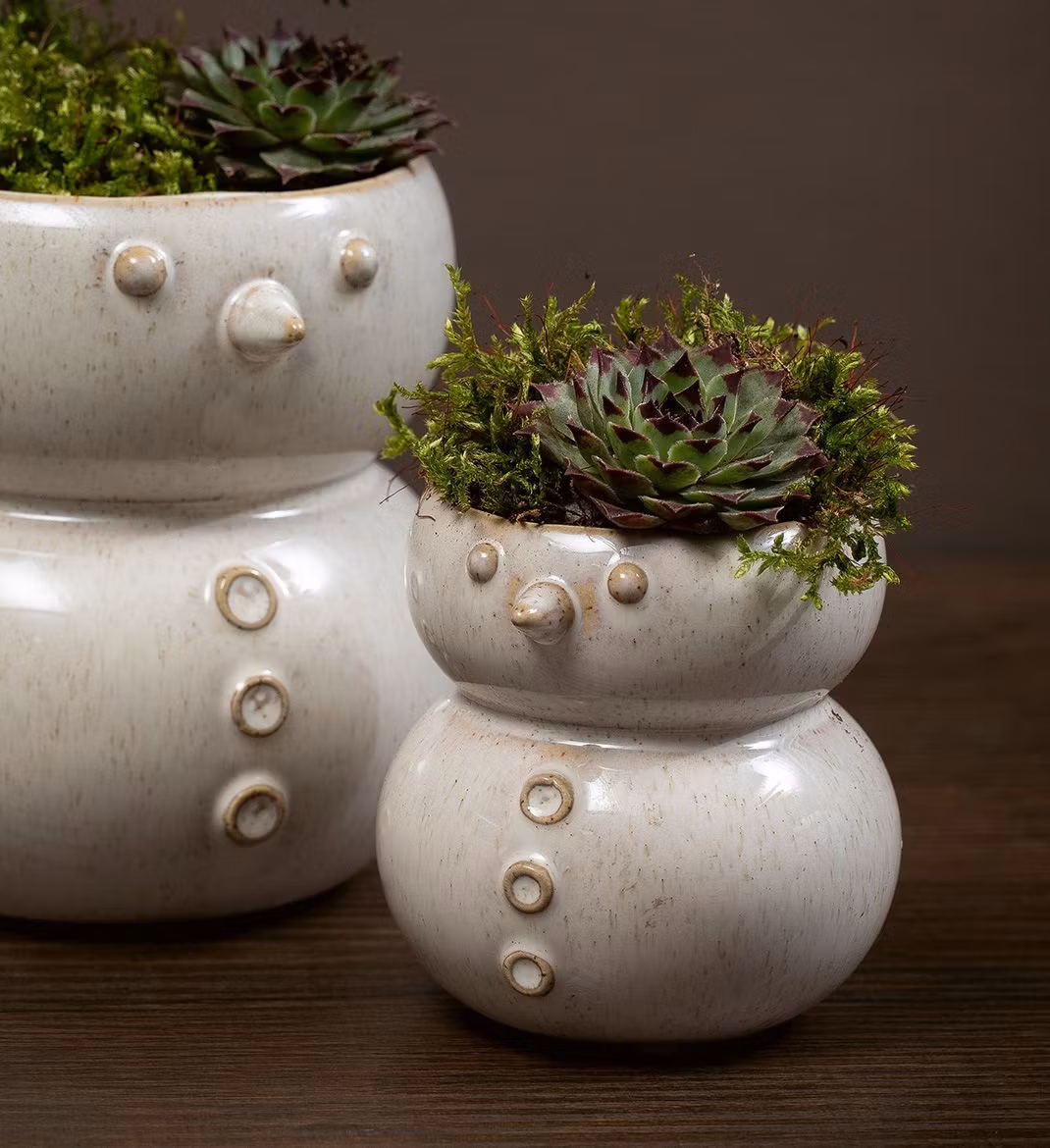 Skøn snemands potte, som både kan bruges til dekorationer og blomster. Fås i 2 størrelser