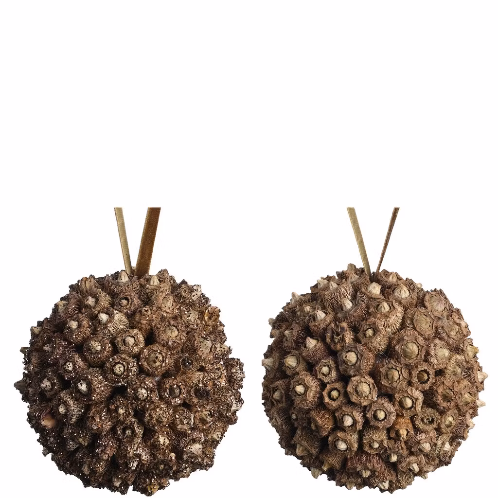 Utrolige smukke natur kugler som både kan bruges i dekorationer og til ophæng. Der fås 5 forskellige modeller nogle med glimmer andre neutral (Varianten sælges ass.