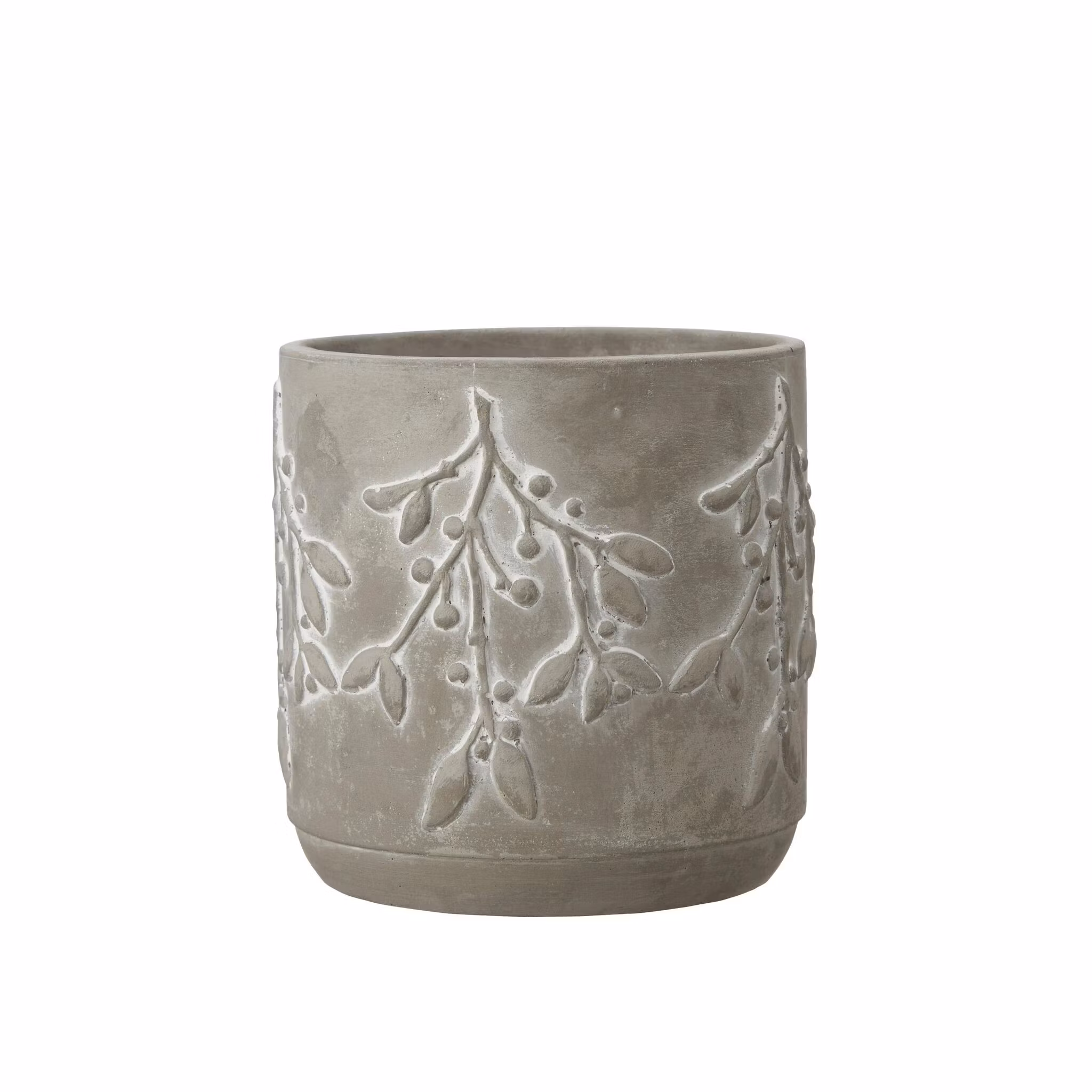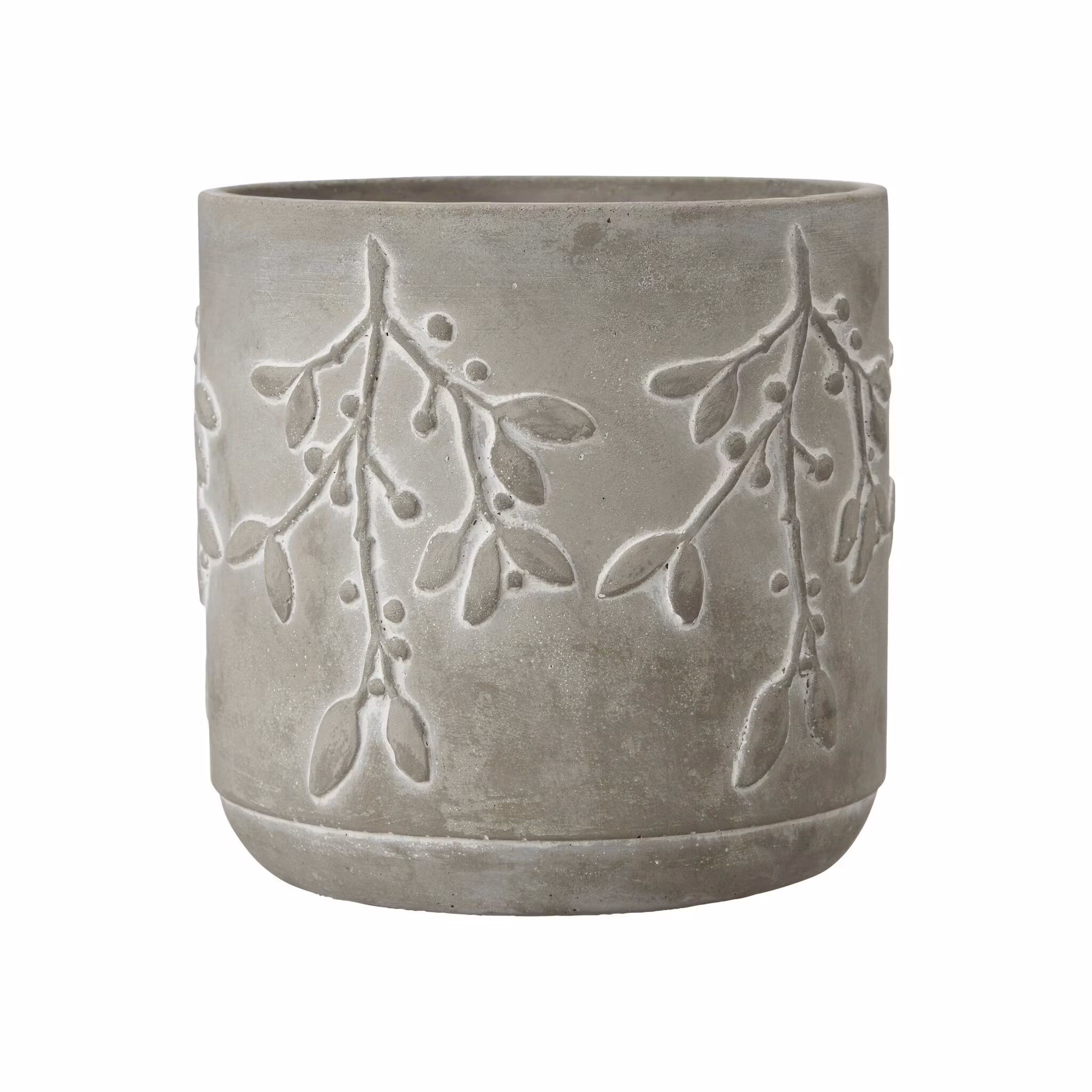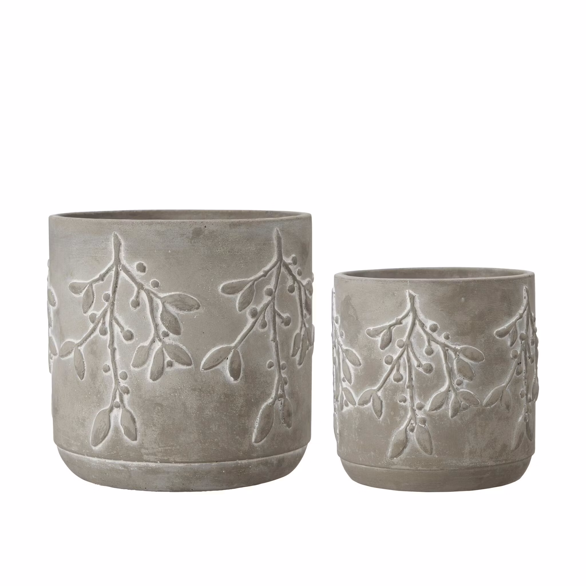 Smukke potter i beton med mistelten på siden. Potterne er fremstillet i beton. Fås i 2 størrelser